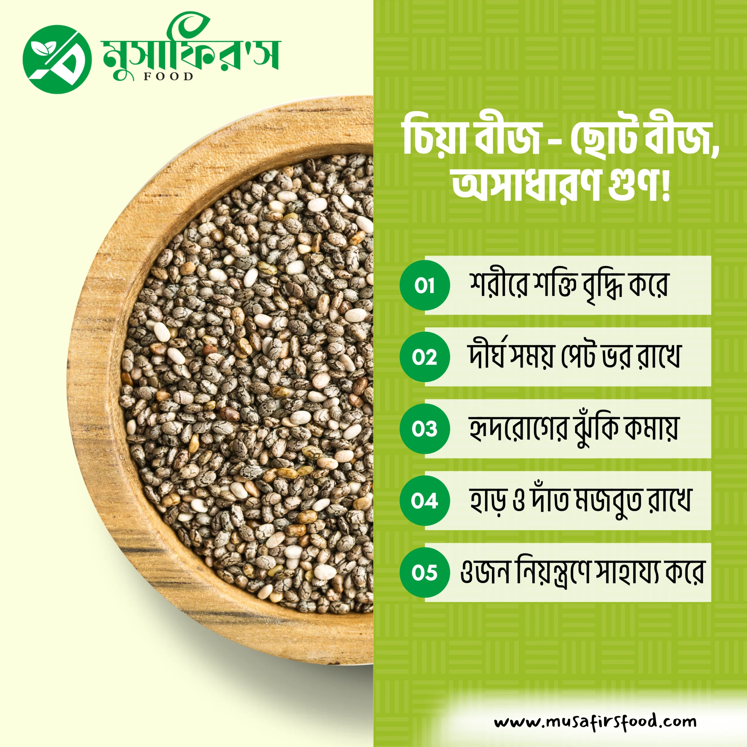 "চিয়া বীজ খুবই প্রিমিয়াম কোয়ালিটি। স্মুদি ও দইতে মিশিয়ে খাওয়া সহজ। হজম এবং ফিটনেসের জন্য একেবারে পারফেক্ট।"